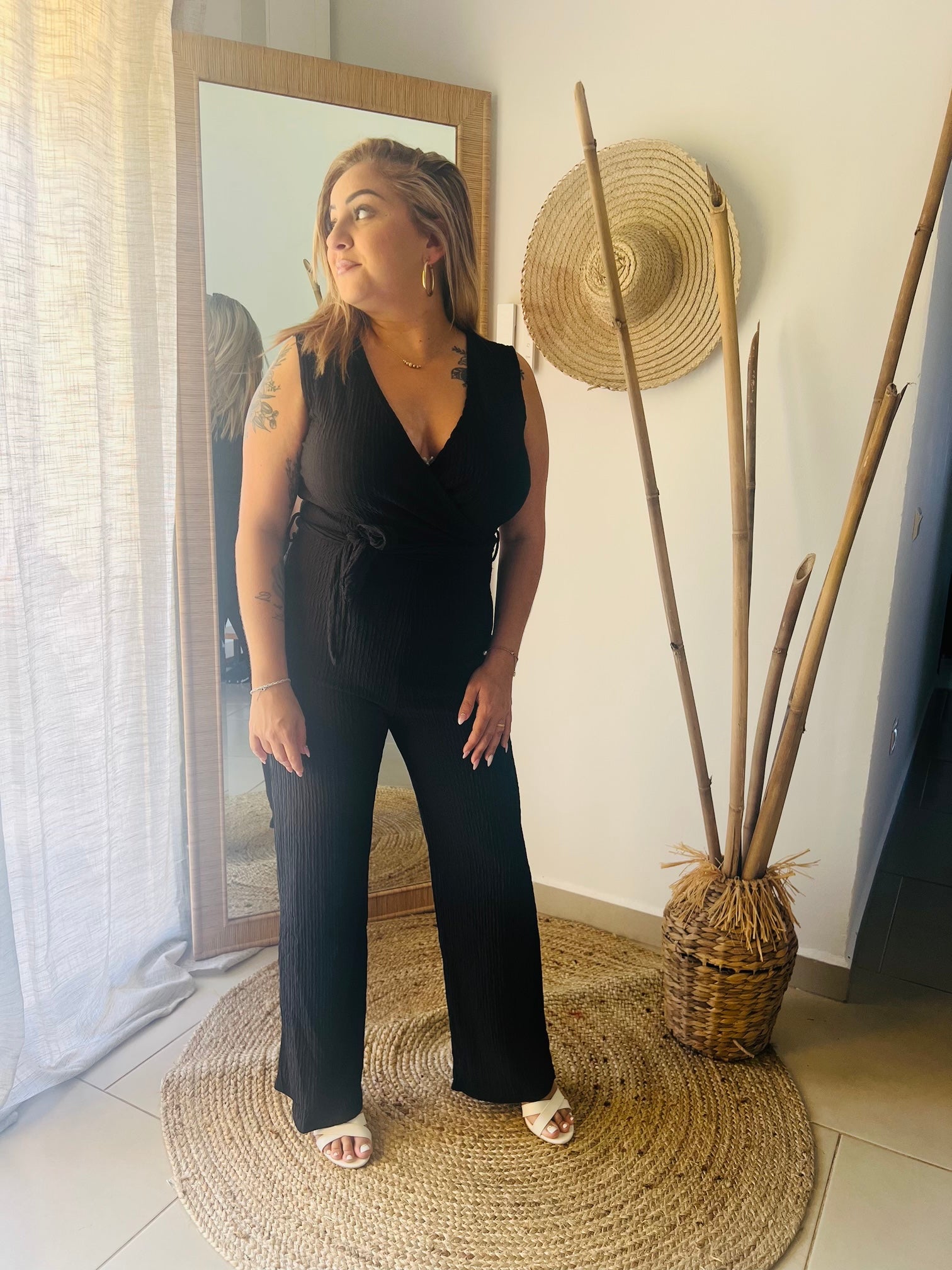 La combinaison Mya allie élégance et confort avec sa coupe cache-cœur flatteuse et son pantalon fluide. Elle épouse la silhouette sans la contraindre, offrant une allure féminine et sophistiquée en toute simplicité.