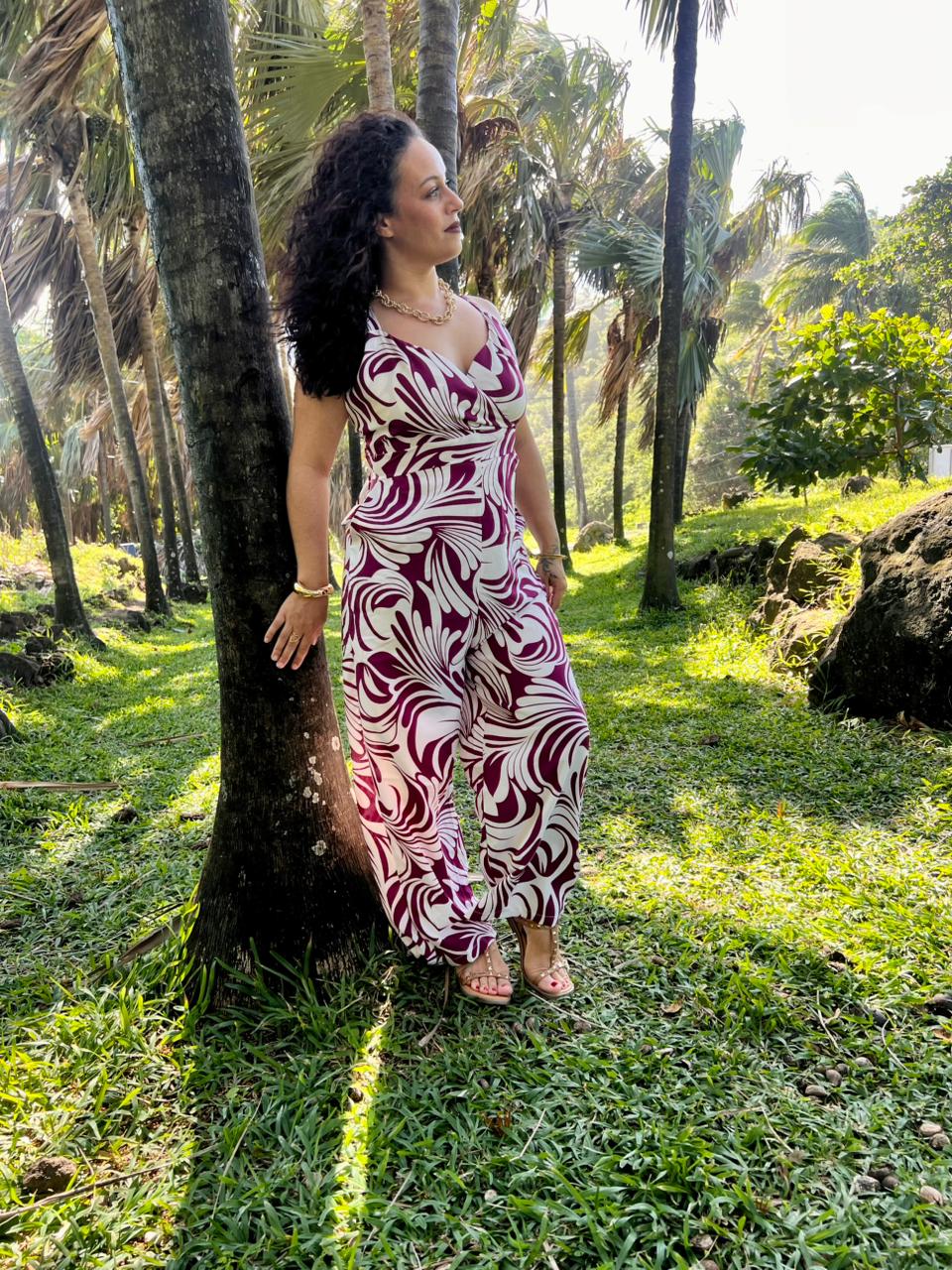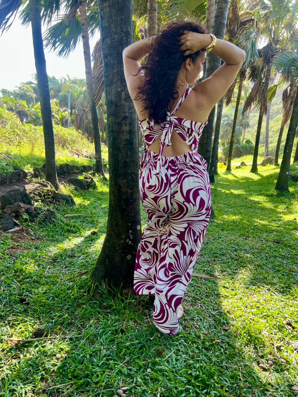 Isalya est une combinaison chic et moderne qui allie élégance et confort. Son coloris prune profond sublimé par des motifs floraux délicats attire tous les regards, tandis que son dos nu ajoute une touche sensuelle et raffinée. Sa coupe fluide assure liberté de mouvement et aisance, idéale pour une soirée estivale ou une sortie urbaine pleine de style.